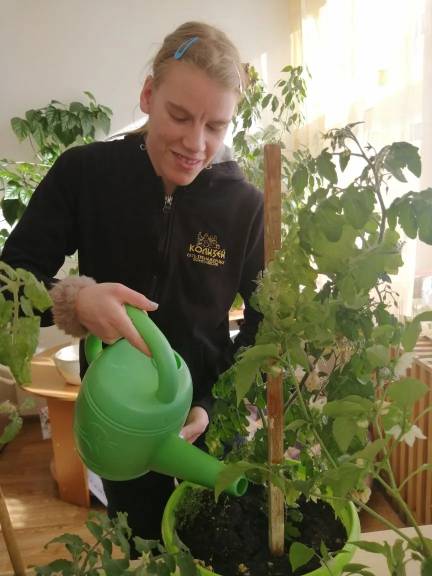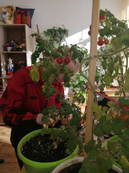 На календаре март, за окном ещё лежит снег, а на подоконнике уже зреют помидоры и перцы. В октябре воспитанницы мастерской «Своими руками» посеяли огурцы, помидоры и перцы для выращивания в помещении. Огурцы, к сожалению, не взошли, зато перцы и помидоры не только выжили, но и успешно плодоносят. Совсем скоро — первый урожай.