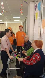 Волонтеры провели мастер- класс по изготовлению весеннего цветка.