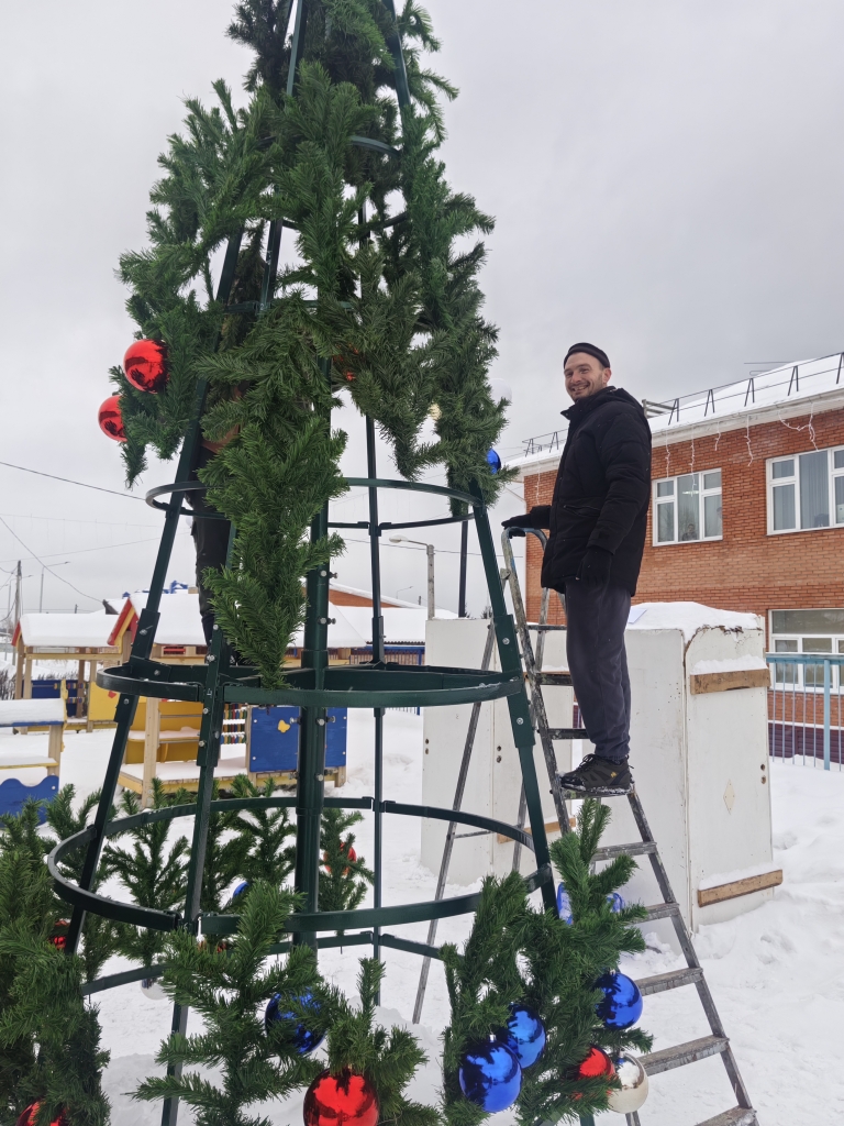 Сегодня в «Родничке» наступила настоящая зимняя сказка. Под открытым небом, под чутким руководством инструктора по труду Михаила Александровича, ребята с вдохновением украшали уличную ёлку — сверкающими шарами, яркими гирляндами, превращая её в сердце праздничного двора.