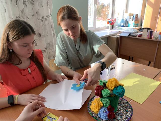 Творческие задачи были связаны с предстоящим женским праздником- 8 Марта. Особенно вдохновенно трудились над букетами, опять- таки используя незаменимый канцелярский предмет. В итоге-букеты замечательные, страхи позади. Настроение отличное!