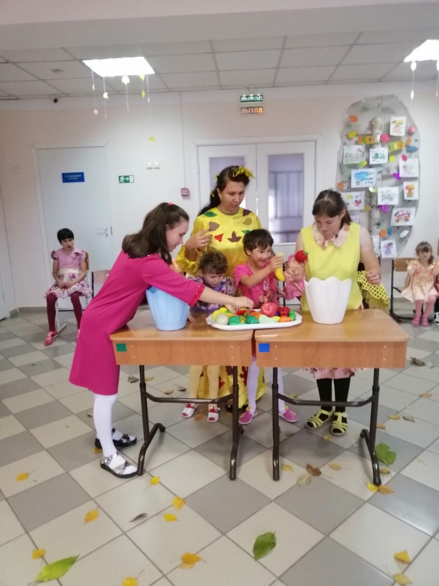 Дети вместе с Красавицей Осенью, пели песни, исполняли задорные танцы, играли в игры, закрепляли умение различать фрукты и овощи по внешнему виду и вкусу и занимались еще многими интересными вещами. Мероприятие стало веселым, ярким, увлекательным. А по его завершению щедрая Осень наградила всех ребят своими сочными спелыми дарами.