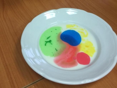 Эксперименты - это всегда занимательно и весело, особенно они нравятся детям. Девочки из 1 группы интерната «Родничок» решили превратить классную комнату в настоящую лабораторию. Химия для детей с особенностями развития не совсем понятна, зато когда жидкость меняет цвет -это вызывает большой интерес. Ну и для себя, честно говоря, полезно сделать парочку открытий из разряда «как я раньше этого не замечала». Делать их несложно, и даже воспитанницы справились с заданиями. В первую очередь познакомились с правилами, которые договорились обязательно выполнять. Использовали только безопасные материалы: молоко, соль, воду, сахар, растительное масло, лёд. Помощникам в работе стали краски, жидкое моющее средство, ватные палочки, зубочистки, салфетки, ножницы.Оказывается, как много в нашей жизни занимает цвет! Цвет помогает узнать, наступила ли весна, какое состояние у человека: бледен он или румянец на щеках. Значит, цвета и их оттенки нужно знать хотя бы для того, чтобы лучше понимать друг друга, понимать окружающее. Девочки солевым раствором прокладывали пути внутрь льдинок и окрашивали их красивыми узорами, смешивали цветные пятна в молоке, раскрашивали салфетки с помощью фломастеров и воды; открыли для себя, что чёрный цвет состоит из красного, зелёного и синего; получали новые цвета. Выполняя опыт «Слияние цветов», девчонки убедились, что если раскрутить разноцветный круг, ты не успеваешь разглядеть все цвета - краски сливаются в один - светло-серый.У нас не получился пока «Сладкий опыт» с сахаром. Попробуем ещё. А вот «Художник из воздуха» пришёлся по душе. Фантазировали вместе, превращая цветовое пятно в реальные предметы. На каждый эксперимент воспитанницы получали пояснение, почему так происходит. На прогулке посыпали дорожки солью, в течение часа наблюдали за взаимодействием соли и льда, были в восторге от простой идеи, объясняющей, как можно избавиться от гололёда.Опыты не только заинтересовали девочек, но и вызвали желание получать знания и самим участвовать в этом увлекательном знакомстве удивительными способностями привычных материалов.