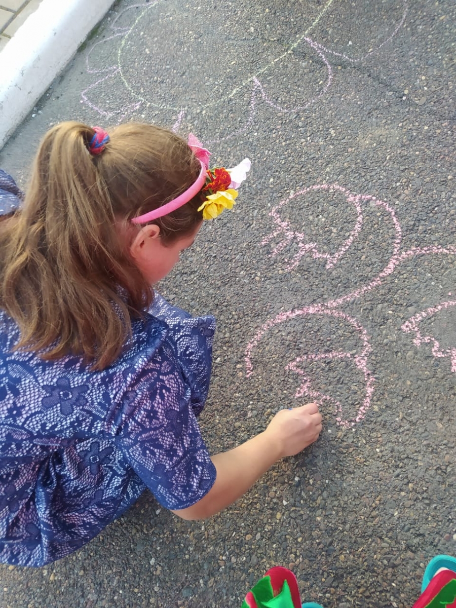 В группе «Солнышко» прошла тематическая неделя «Цветочная фантазия». На календаре 14 сентября, а у нас в интернате цветут и благоухают цветы. Мы с девочками тоже вырастили на своей клумбе прекрасные цветы, за которыми всё лето ухаживали, поливали и пололи. Девочки посмотрели фильм о жизни цветов, мы поговорили о цветах, нарисовали любимые цветы. В конце недели прошло развлечение с цветами. Всё играли, танцевали, плели, рисовали цветы на асфальте, всём было весело и интересно!