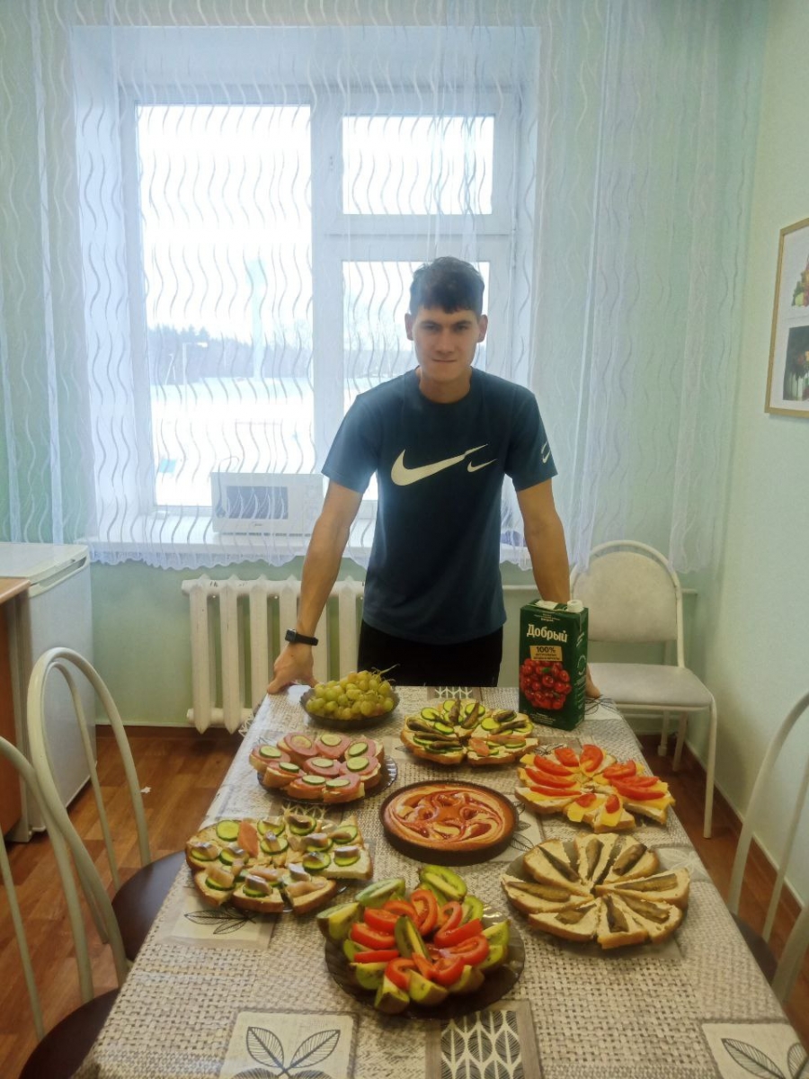 Компания собралась за столом, где приготовили простые, но вкусные угощения: свежие бутерброды и разнообразные нарезки. Такое домашнее меню создало непринуждённую обстановку, которая позволила всем чувствовать себя комфортно и расслабленно.