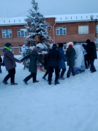 29 декабря в нашем интернате прошел праздник - Открытие уличной елки! Дети со всех групп готовились к этому мероприятию, они украшали ель, учили стихи, наряжались сами. На праздник из дикого леса пришли гости: Леший, баба Яга, дел Мороз, Снегурочка и Зимушка-Зима, они провели с ребятами конкурсы и игры, поводили хороводы вокруг ёлки. Воспитанники рассказали Деду Морозу стихи, а потом сфотографировались на память у снежных фигур. Всем было весело! С раскрасневшимися  щёчками, довольные и счастливые детки разошлись по группам.