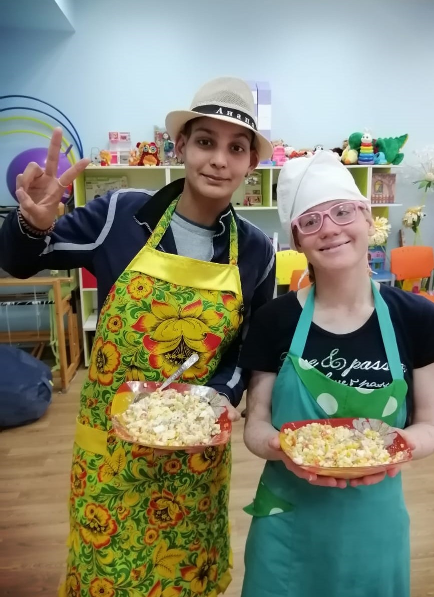 Люба с Сашей угостили всю группу, салат всем понравился. Браво нашим юным повар там.