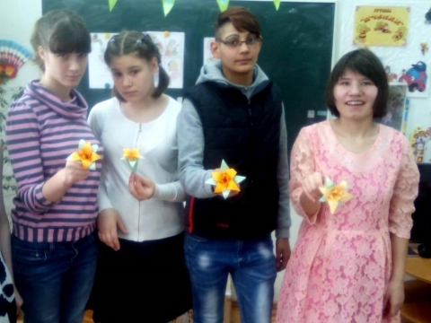 22 марта девочки двух групп "Пчелка" и "Солнышко" приняли участие в мастер-классе "Лилии", который провела для них воспитатель группы Мордовина Ирина Васильевна. Лилии изготавливались из цветной бумаги методом оригами. Девочкам сначала было наглядно показано, как изготавливается цветок полностью, а затем они сами приступили к его изготовлению. Делали цветок поэтапно вместе с воспитателем, каждая изготовила не по одному, а по два цветочка, так как им это очень понравилось. В итоге получился красивый, весенний букет!