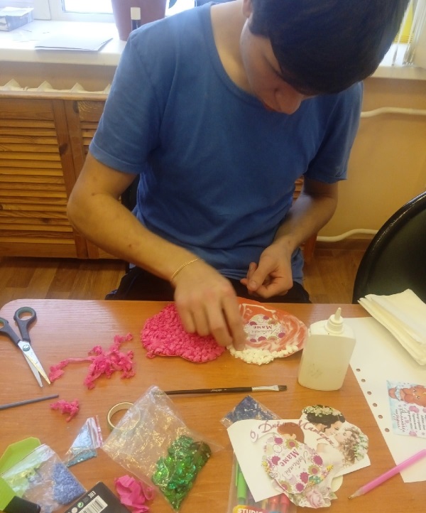 16 по 19 Ноября в группе «Непоседы» шла неделя по мастер — классу «Подарок для мамы». Поводом к проведению мастер-класса послужил наступающий праздник «День матери». Его отмечают каждый год последнее воскресенье ноября. Дети не только вырезали, клеили и подбирали цвета, формы и материалы для работы, но вели беседу о самых дорогих, родных и любимых мамах. Руслан И. показал свой готовый подарок, открытка в форме сердца из флористической креп - бумаги и рассказал, как он делал открытку. Изготовление подарка для самых родных и любимых людей на свете принесло массу удовольствия и радости. В ходе мастер-класса ребята научились создавать что-то красивое, проявлять фантазию, выражать эмоции и радоваться результату своего труда. Нет ничего дороже подарка, сделанного своими руками! Значит, мамы в день праздника будут приятно удивлены, а детишки с радостью будут дарить подарки, которые сделали сами.