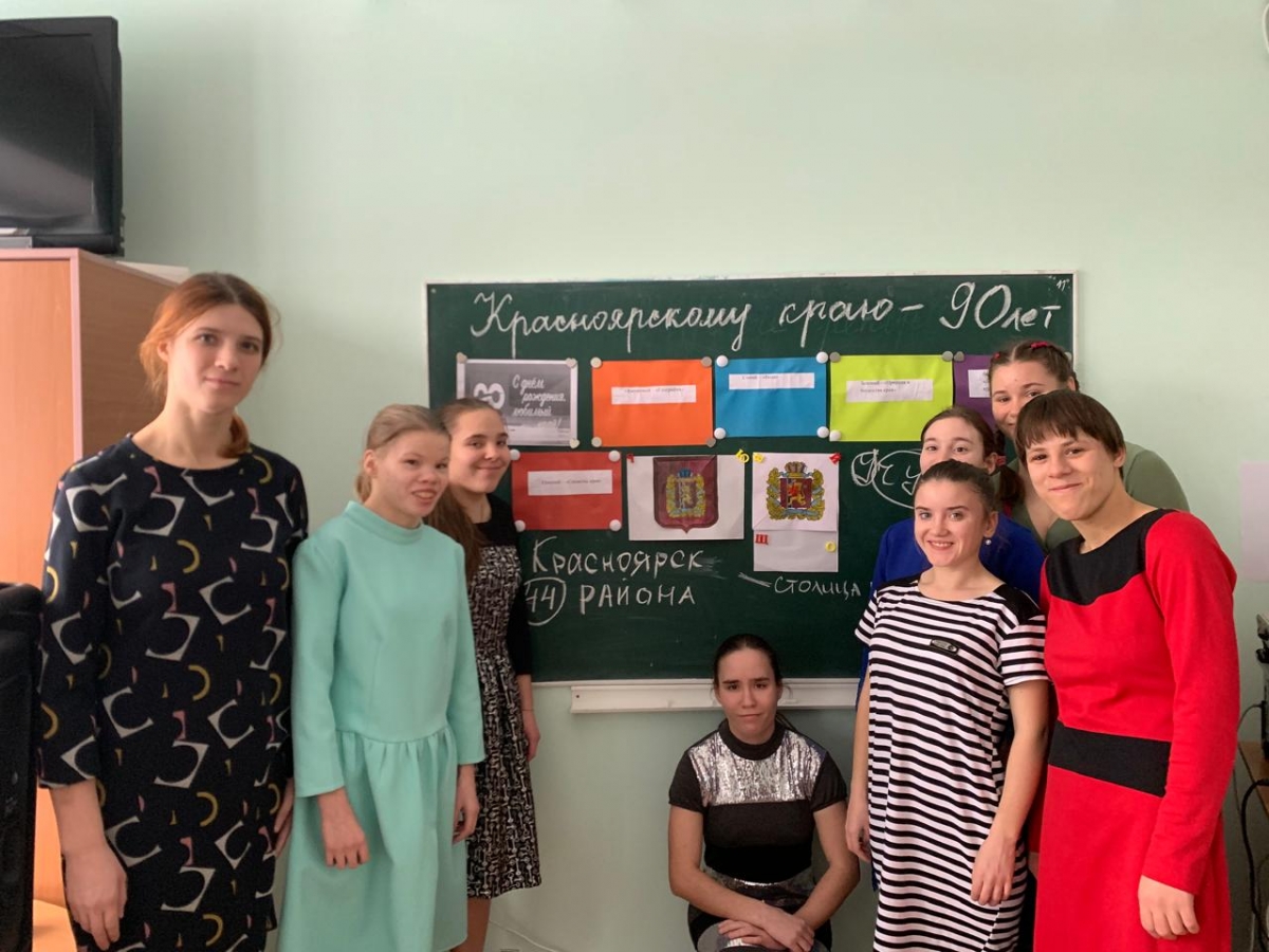 В первой группе к 90 - летию Красноярского края прошел квест « Мой край родной». Каждая команда получила свой план прохождения станций, на котором указан маршрут и темы. Квадраты разных цветов обозначали «Символы края», «Географию», «Воду», «Природу и богатства края», «Достопримечательности». Участницы квеста складывали из частей фото герб и флаг Красноярского края; проверяли свои знания, отвечая на вопросы блиц-турнира. С помощью Интернета искали названия 10 рек, протекающих в Красноярском крае. Сложным оказался ребус про озеро Учум. Увлеченно девочки из предложенных картинок с изображением деревьев выбирали те, которые растут у нас. Хорошо присутствующие ориентируются в деревьях, знают птиц, зверей, рыб.