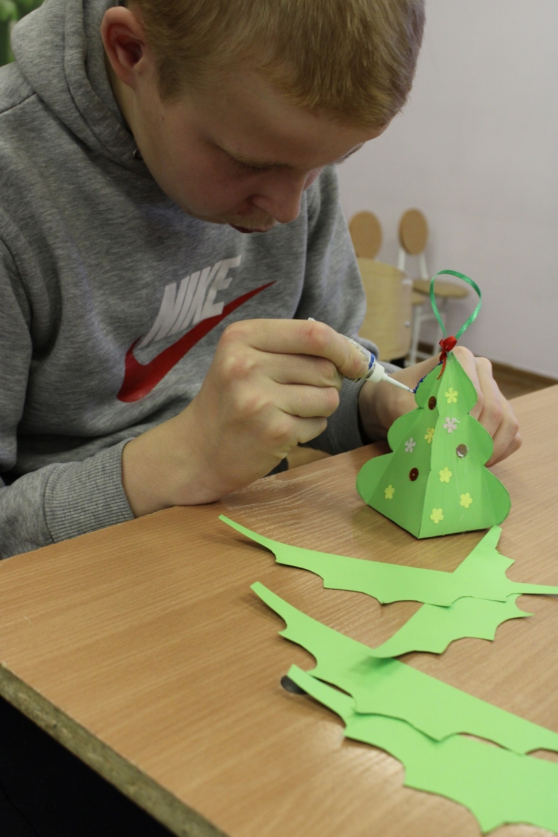 Прекрасное время года – зима! Замечательна она и тем, что пробуждает фантазию, воображение. Глядя на эту белоснежную красоту, хочется творить! В преддверии Нового Года, по традиции, в нашем интернате проходят мастер-классы для детей и выставка поделок.Сегодняшний мастер-класс по изготовлении новогодней елочки нам показала сотрудник Большемуртинского краеведческого музея Апухтина Татьяна Сергеевна, но вначале она рассказала предысторию про Деда Мороза и про то, как он им стал. Целью данного мероприятия стало развитие творческой активности воспитанников и создание праздничной, волшебной, новогодней атмосферы. Ребята под руководством Татьяны Сергеевны ребята вырезали, склеили и украсили замечательные елочки, которые забрали с собой для украшения групп.