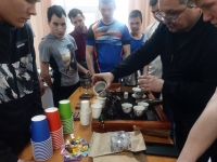 Андрей Викторович приехал не с пустыми руками. Он занимается изготовлением чаёв и с удовольствием поделился своим ремеслом с ребятами: показал, как правильно заваривать ароматный напиток, рассказал о тонкостях чайной церемонии. Все присутствующие смогли продегустировать несколько сортов и согреться за душевной беседой.
