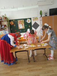 В младшей группе нашего интерната прошёл утренник к 8 марта «В гости к Матрешке». Детям была загадана загадка, её сразу отгадали. В зал зашла Матрёшка в костюме со своими «дочками», они сыграли свой хоровод и предложили девочкам собрать настоящую деревянную игрушку матрешку, которая упала и рассыпалась. Конечно, не все дети сразу справились, но в итоге матрешку собрали. Конкурсы и игры «Нарядись и покажись», «Собери лучики», «Сложи лепестки у ромашки» и другие, песни и танцы добавили много приятных и весёлых эмоций. В завершение праздника провели аттракцион на самый красивый букет. Даша Р. и Даша М. прекрасно с ним справились. А потом девочки получили подарки от мальчиков, сделанные своими руками.