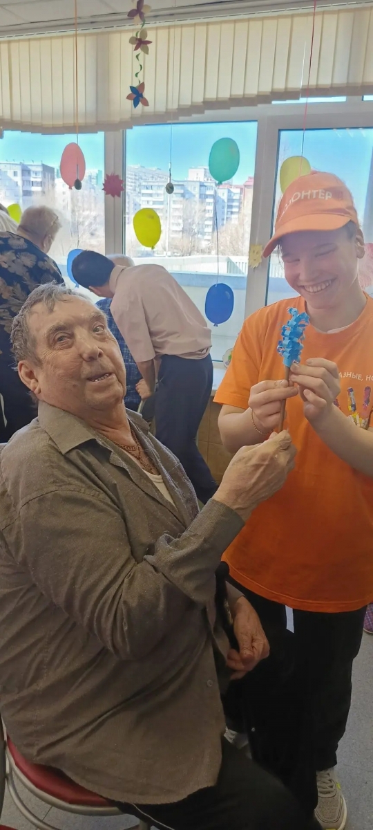 Волонтеры провели мастер- класс по изготовлению весеннего цветка.