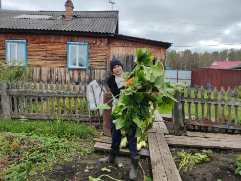 Ребята помогли по двору, выкопали картофель, собрали кабачки, убрали ботву. Светлана Ефимовна была рада помощи, угостила ребят сладостями.
