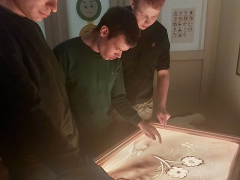 В нашем реабилитационном центре появился новый инструмент творческой терапии — световой стол для песочной анимации. Его изготовил инструктор по труду Михаил Александрович Дигилев совместно с ребятами. Теперь у наших подопечных появилась новая возможность познавать себя и мир через магию песка и света.